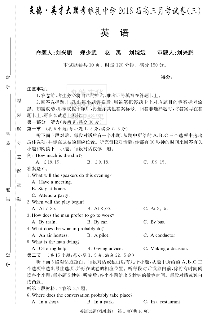 | 資源類別: | 名校月考 | |