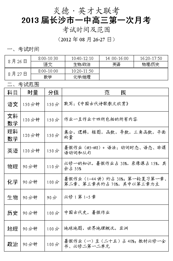 下一篇:炎德英才大聯(lián)考長沙市一中2013屆高三月考試卷考試時間和范圍(第2-11次)