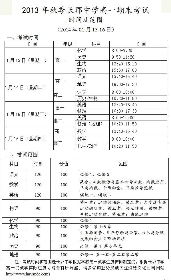 上一篇:2013年秋季長郡中學(xué)高一期中考試時間和范圍(2013.11.04-06)
