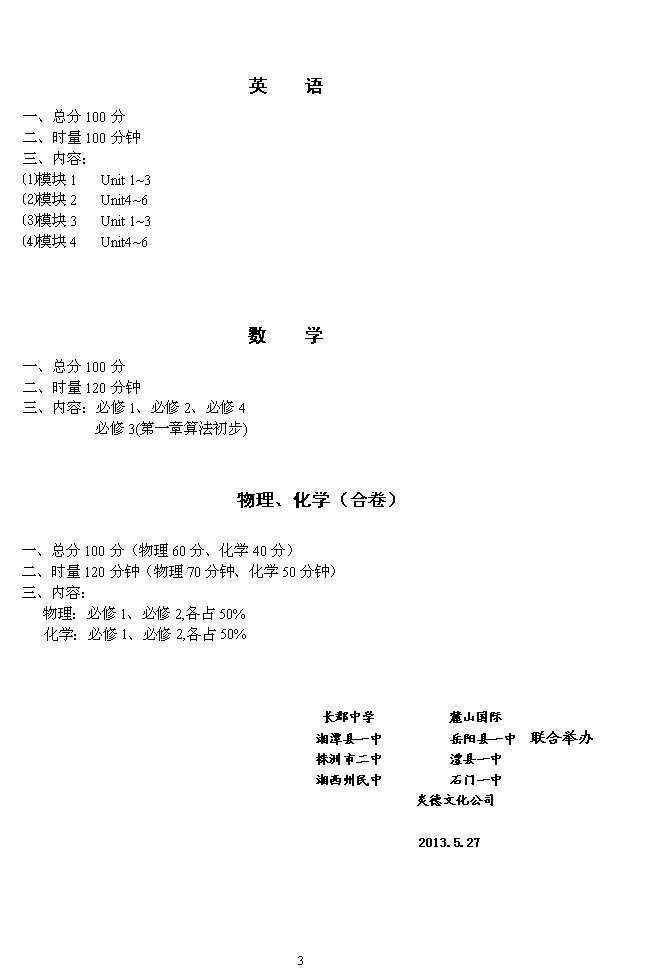 下一篇:2013年秋季長郡中學高二入學摸底考試時間和范圍(2013.08.25-26)