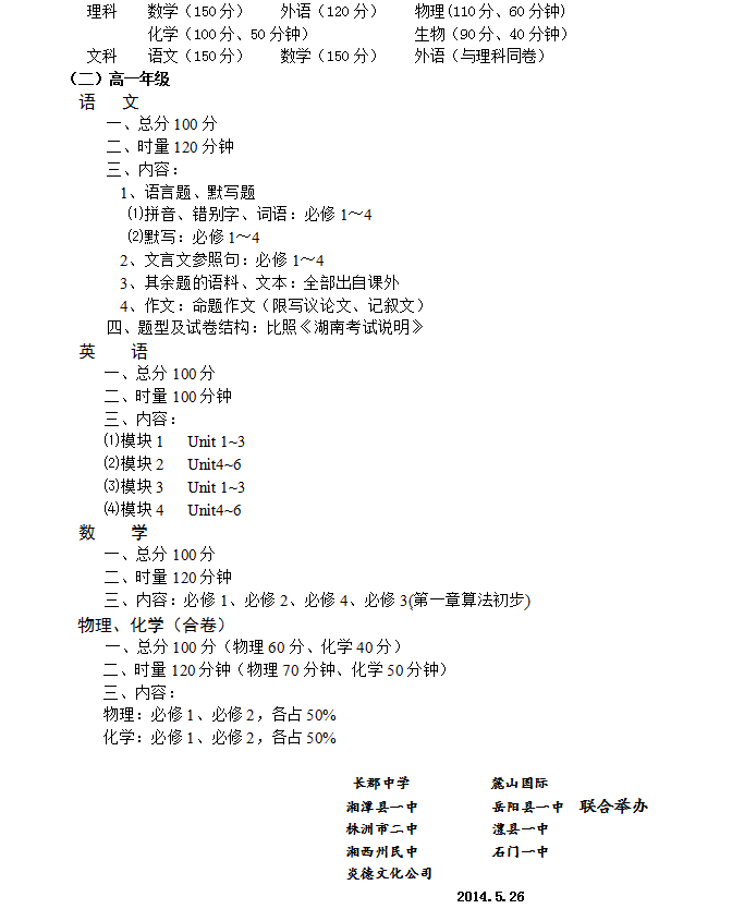 上一篇:2014年春季長郡中學(xué)高二第一次月考考試時間及范圍(2014.03.15-16)