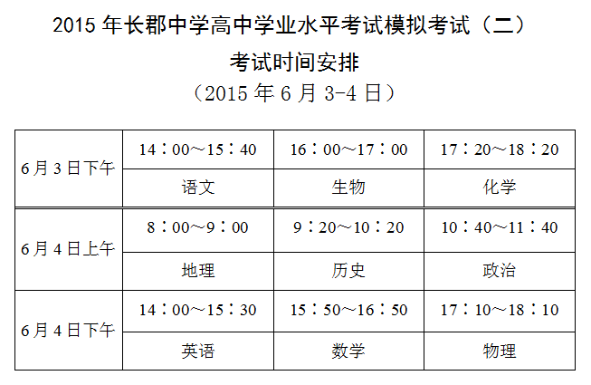 上一篇:2015春季長郡中學高二學業(yè)水平考試仿真模擬試卷一考試時間安排(2015年5月4-6日)