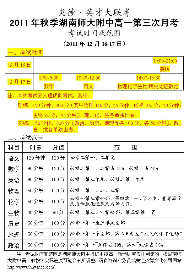 下一篇:2011秋季湖南師大附中高一期末考試時間和范圍