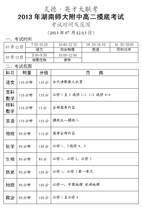 下一篇:2013年秋季師大附中高二入學(xué)摸底考試時間和范圍(2013.08.30-31)