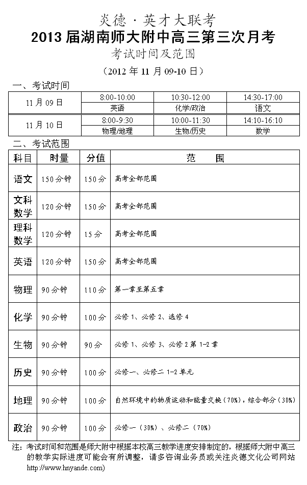 來(lái)源:炎德文化點(diǎn)擊:2012-10-25 14:16:35收藏本文當(dāng)前位置:考試范圍 師大附中 高三 正文