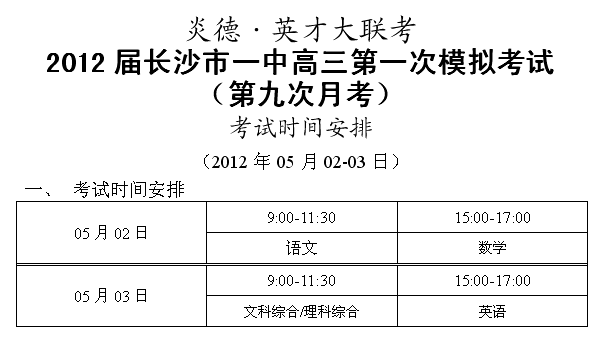 下一篇:炎德英才大聯(lián)考雅禮中學2012屆高三第二次模擬(第九次月考)考試時間和范圍