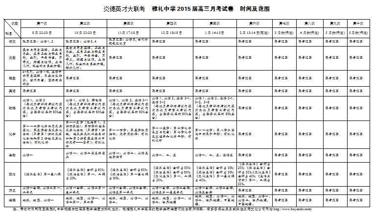 炎德英才大聯(lián)考雅禮中學(xué)2015屆高三月考試卷考試時(shí)間和范圍(第1-10次)
