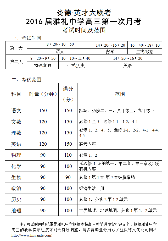 來(lái)源:炎德文化點(diǎn)擊:2015-09-23 12:43:30收藏本文當(dāng)前位置:考試范圍 雅禮中學(xué) 高三 正文