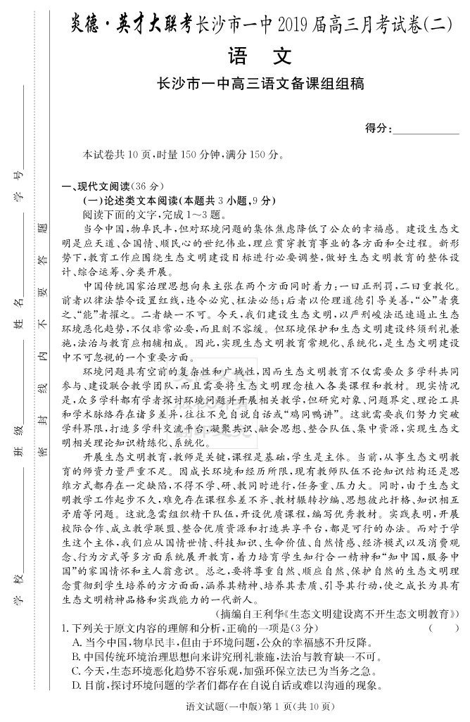 上一篇:【英語】炎德英才大聯(lián)考2019長沙一中高三2次月考