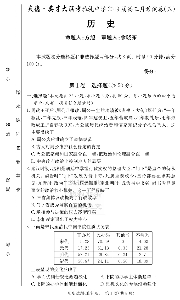 2026湖南師大附中新高考考前小題訓練·歷史