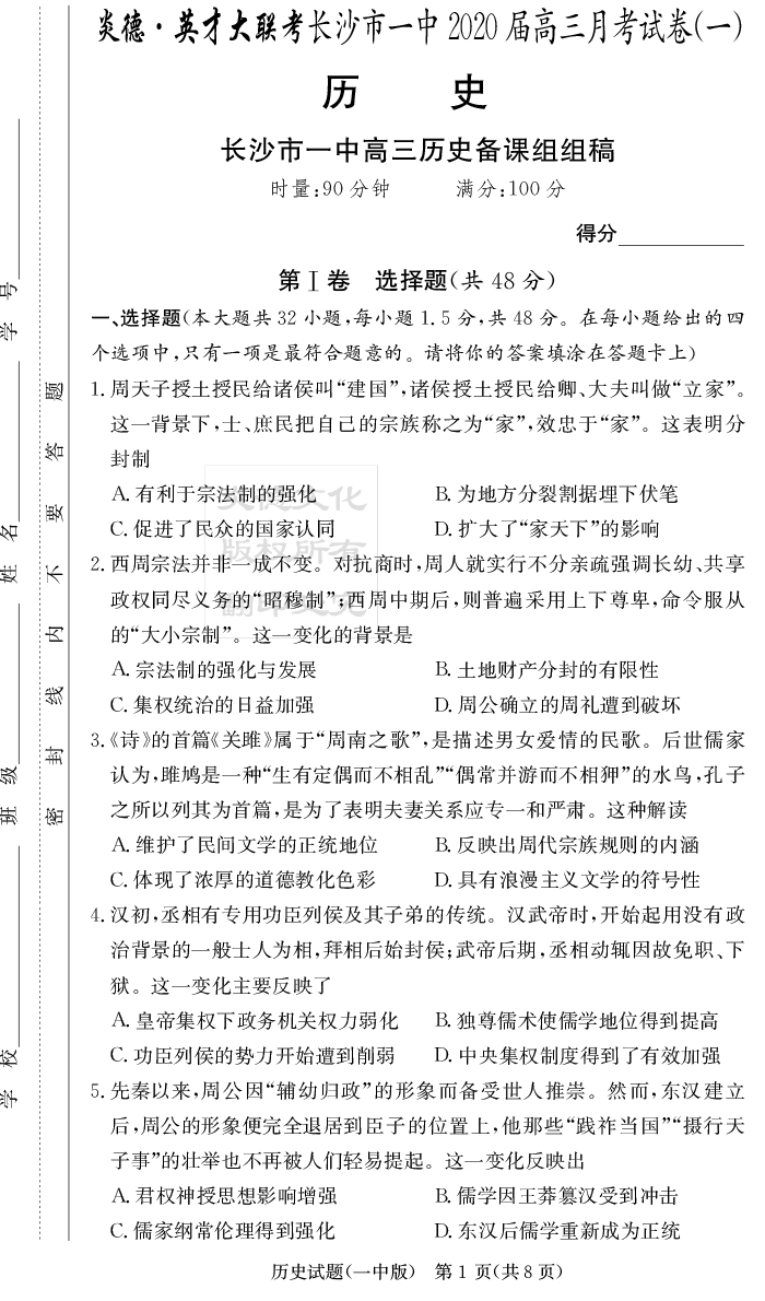 2026長郡中學新高考考前小題沖刺訓練·歷史