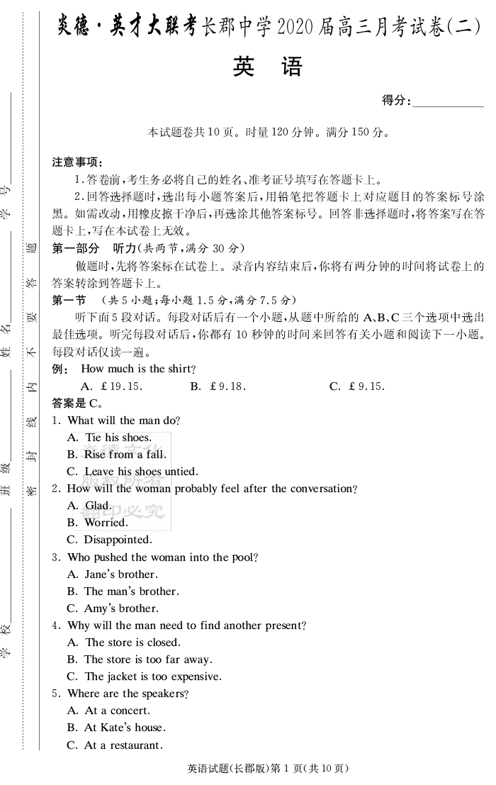 | 資源類別: | 名校月考 | |
