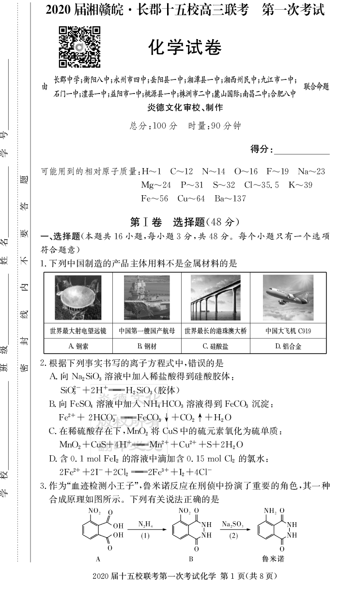 2026年高中寒假作業(yè)自主學習作業(yè)本·高三年級·化學