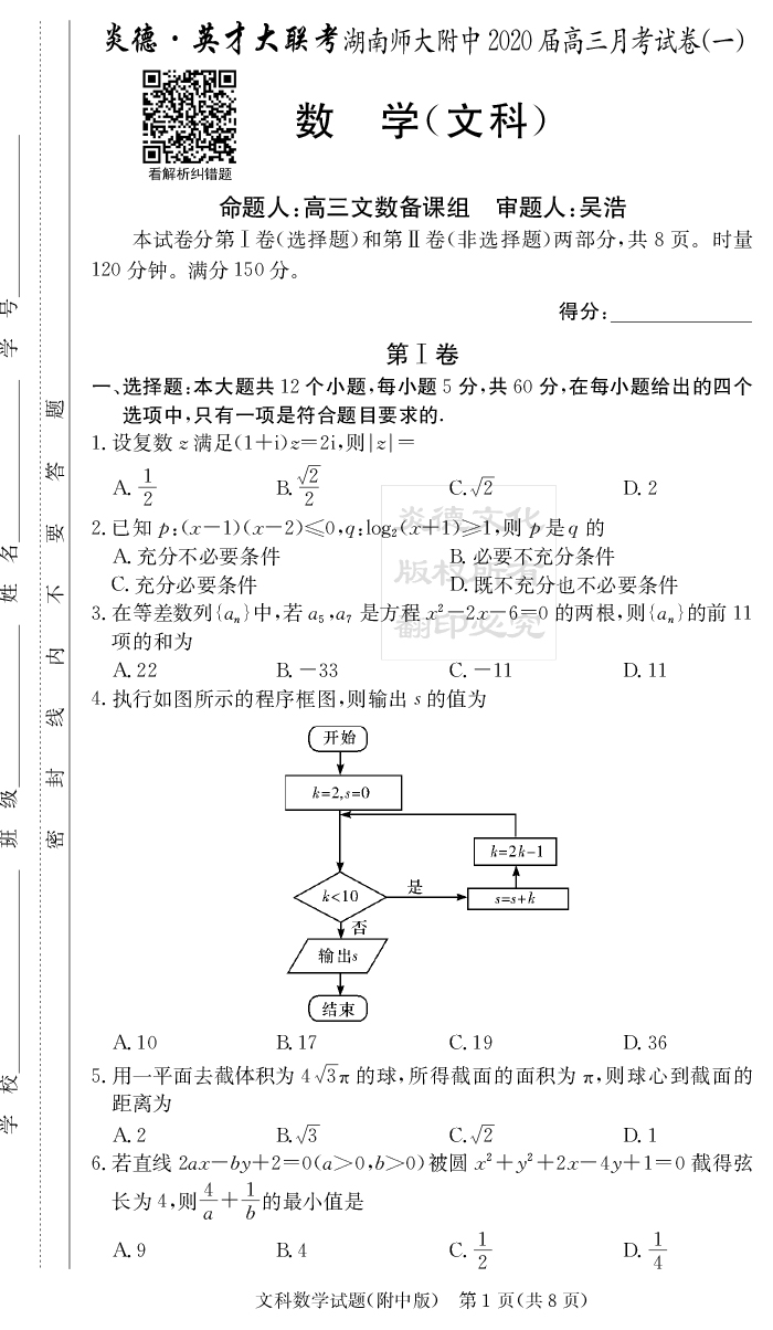 2026湖南師大附中新高考考前小題訓練·數(shù)學