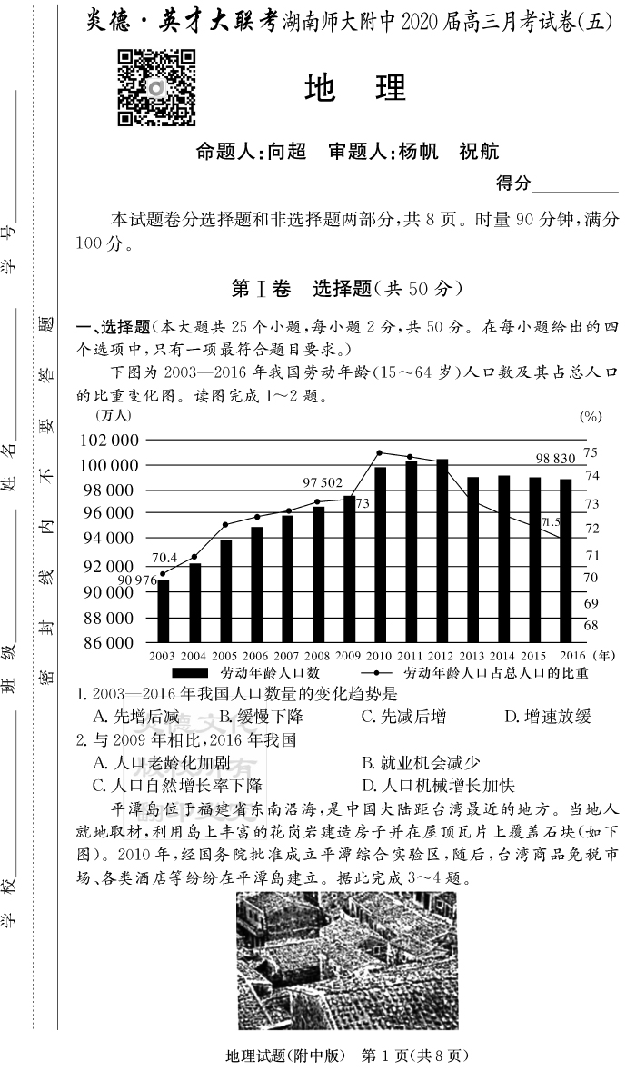 2026湖南師大附中新高考考前小題訓練·地理