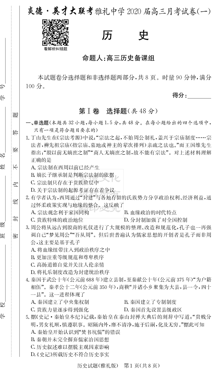 | 資源類別: | 名校月考 | |