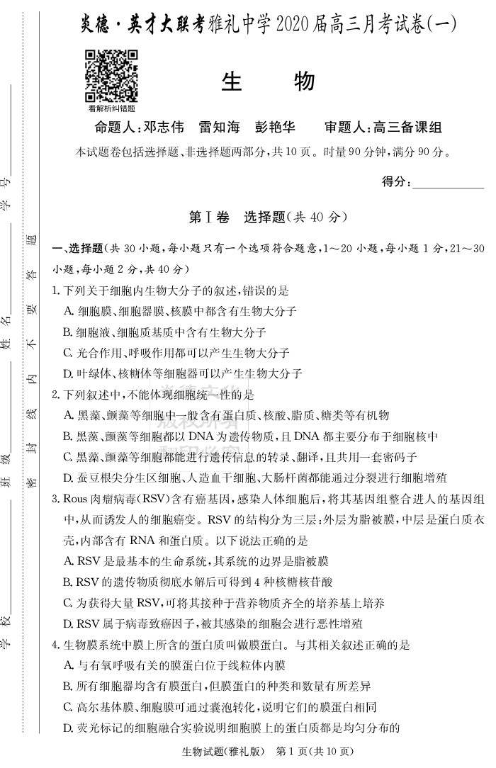 | 資源類別: | 名校月考 | |