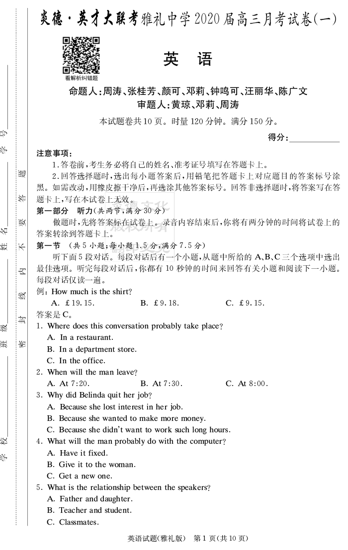 上一篇:【物理】炎德英才大聯(lián)考2020屆雅禮中學高三1次月考
