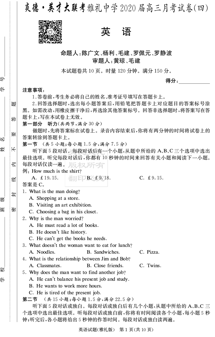 | 資源類別: | 名校月考 | |
