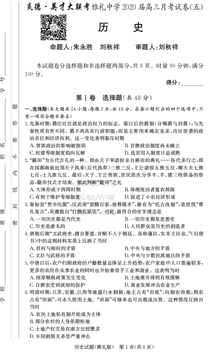| 資源類別: | 名校月考 | |