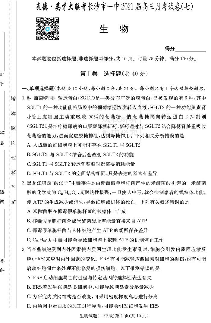 | 資源類別: | 名校月考 | |
