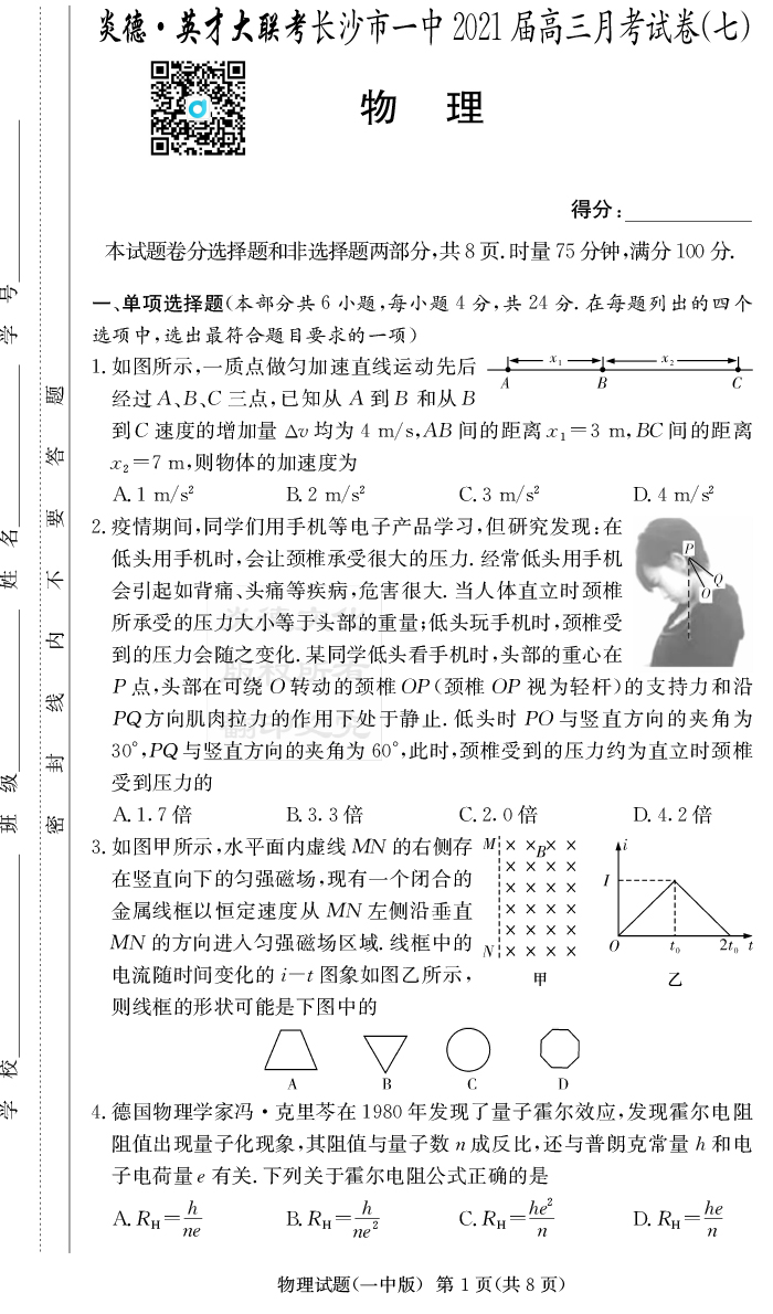 2026年長郡中學備考寶典(高考考前寶典)·物理傾向
