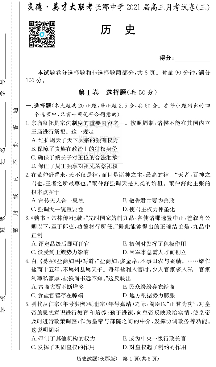 | 資源類別: | 名校月考 | |