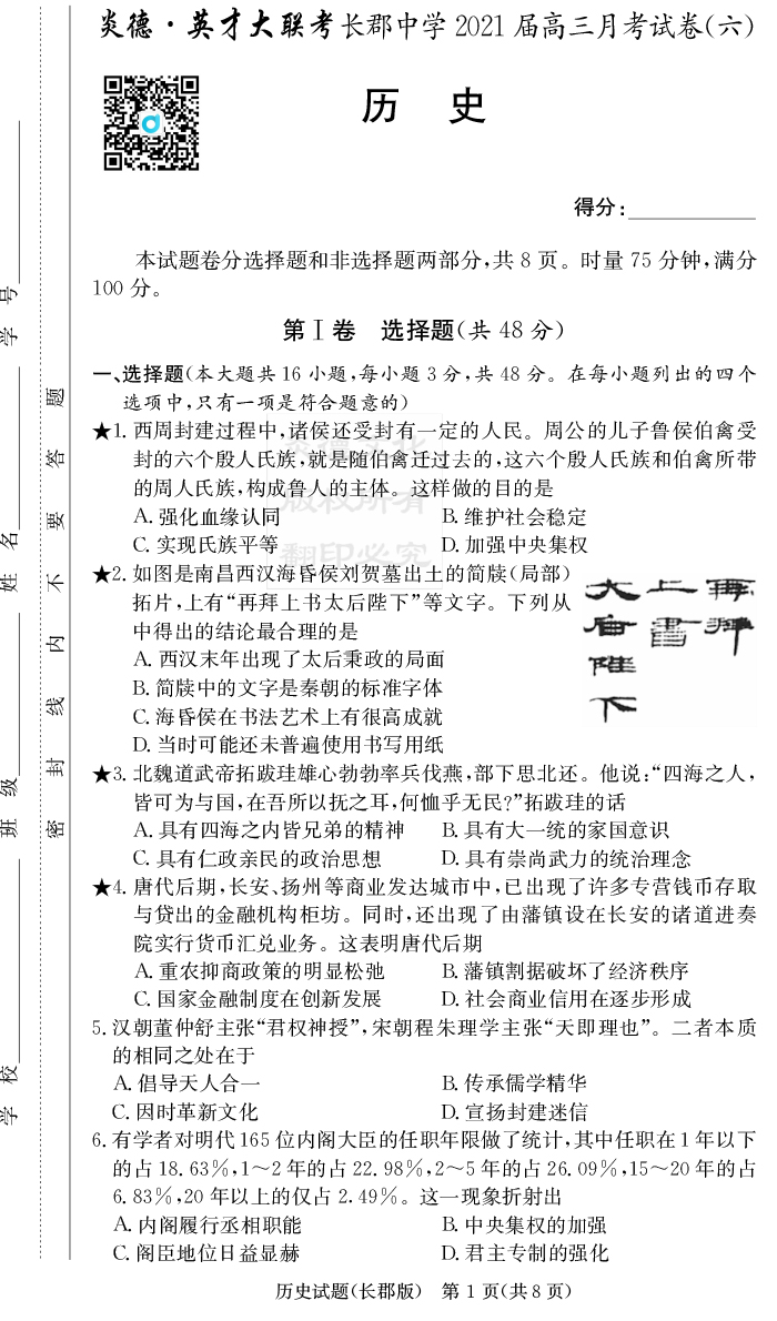 | 資源類別: | 名校月考 | |