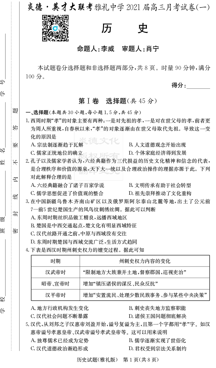 | 資源類別: | 名校月考 | |