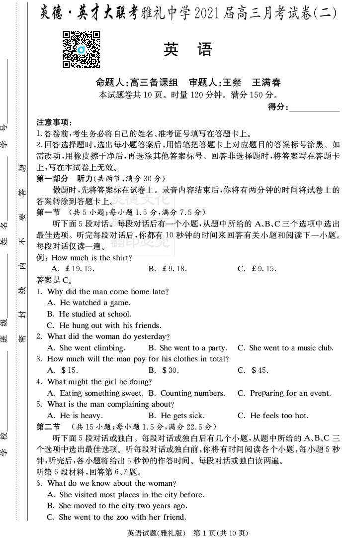 下一篇:【語文】炎德英才大聯(lián)考2021屆雅禮中學高三2次月考