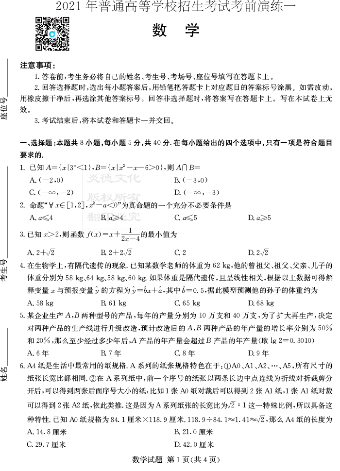 下一篇:【物理】2021年普通高等學校招生全國統(tǒng)一考試考前演練(一)