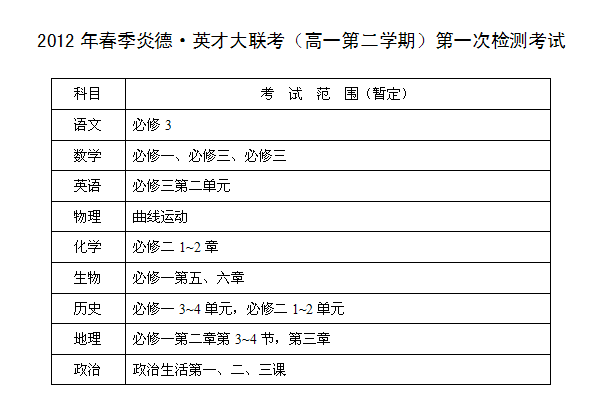 上一篇:炎德英才大聯(lián)考2011年秋季高一高二月考考試時間及范圍(2011.10-2012.01)