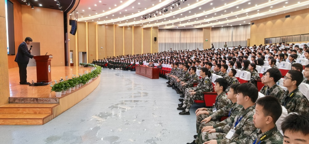上午十點(diǎn),講座在陶鑄中學(xué)大禮堂準(zhǔn)時(shí)開始,由學(xué)校黨委書記鄧振主持,800 余位學(xué)生現(xiàn)場聆聽了此次愛國主義教育講座。國防班的同學(xué)進(jìn)行了訓(xùn)練表演。