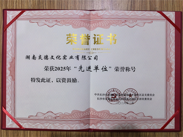 經(jīng)社區(qū)綜合考評(píng),湖南炎德文化有限公司憑借在社區(qū)共建、紅色文化傳承、公益志愿服務(wù)等領(lǐng)域的扎實(shí)舉措與卓越表現(xiàn),脫穎而出,榮獲2025年度“先進(jìn)單位”榮譽(yù)稱號(hào)。這份榮譽(yù),既是社區(qū)對(duì)公司過去一年工作的高度肯定,也是對(duì)企業(yè)主動(dòng)履行社會(huì)責(zé)任、深耕社區(qū)服務(wù)的充分認(rèn)可。