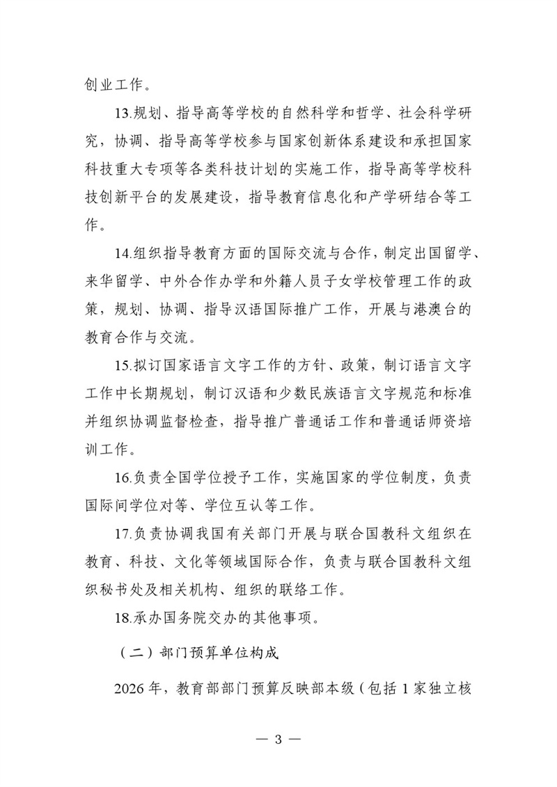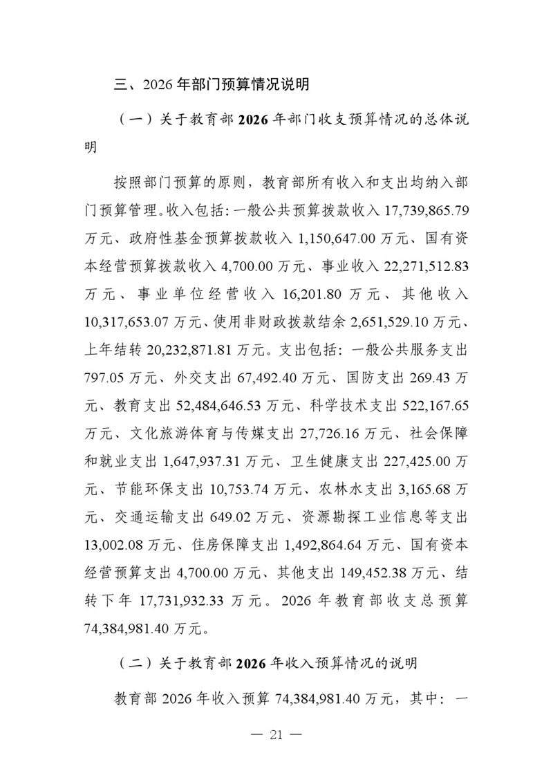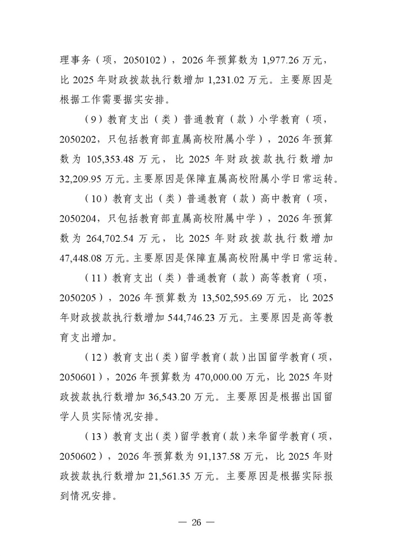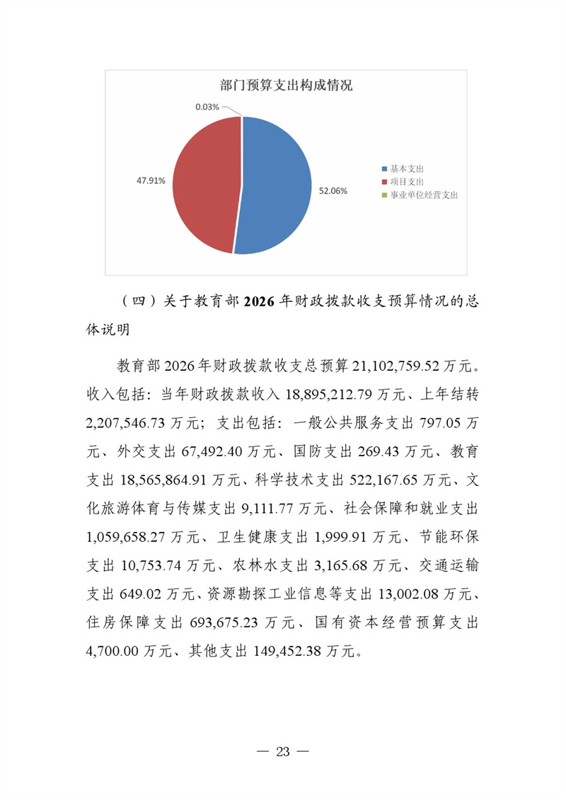 教育部2026年部門預(yù)算