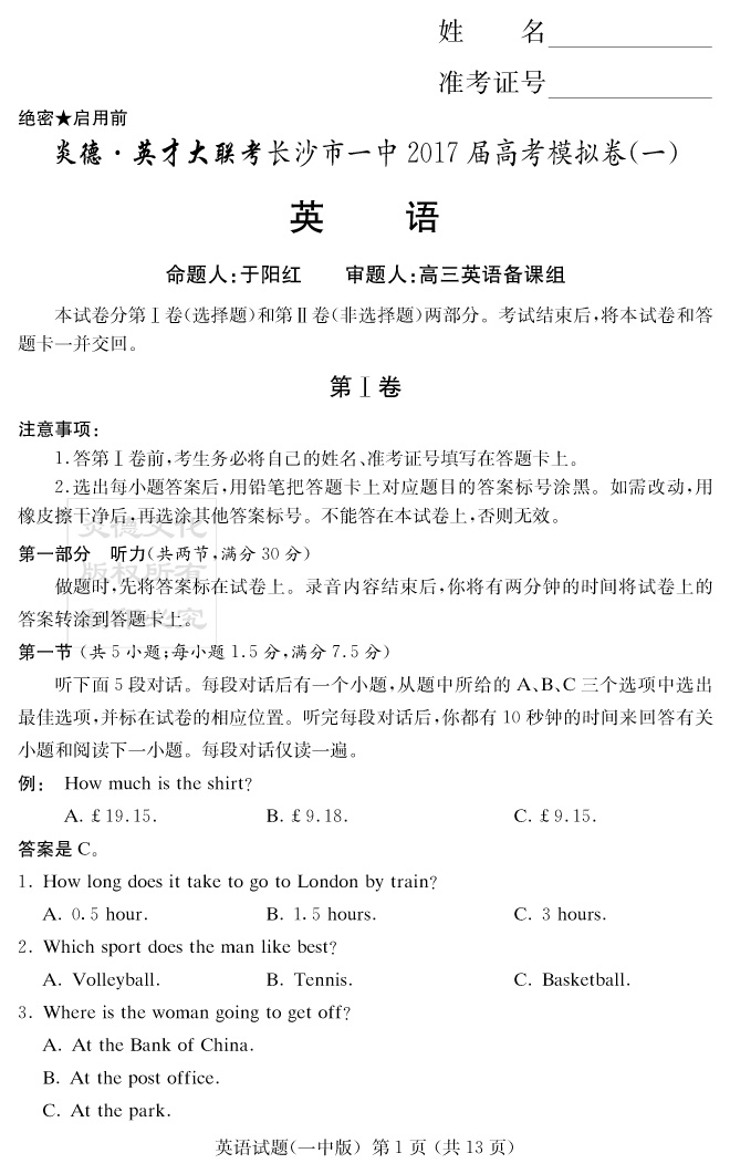 | 資源類別: | 名校月考 | |